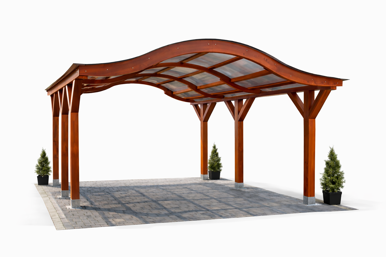 Iga varjualune valmistatakse kvaliteetsest liimpuidust ja vastupidava katusematerjaliga, mis tagab pika kasutusea ning minimaalsete hoolduskuludega lahenduse. Võimalik on valida erinevad mõõdud, värvitoonid, külgseinad, valgustus ja vihmaveesüsteemid.
